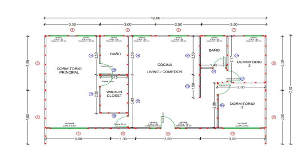 ° TABIQUERIA 2 X 3 PIE DERECHO 60 CM, CADENETA DOBLE.