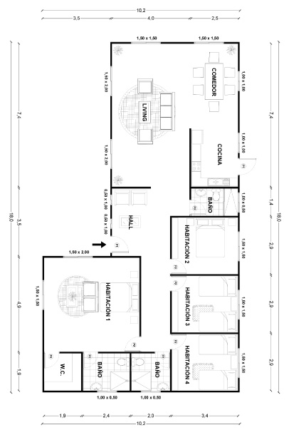 Incluye viga de refuerzo para zona living – comedor.